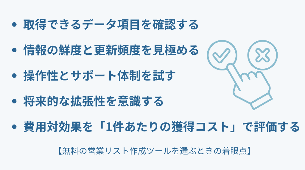 無料の営業リスト作成ツールを選ぶときの着眼点